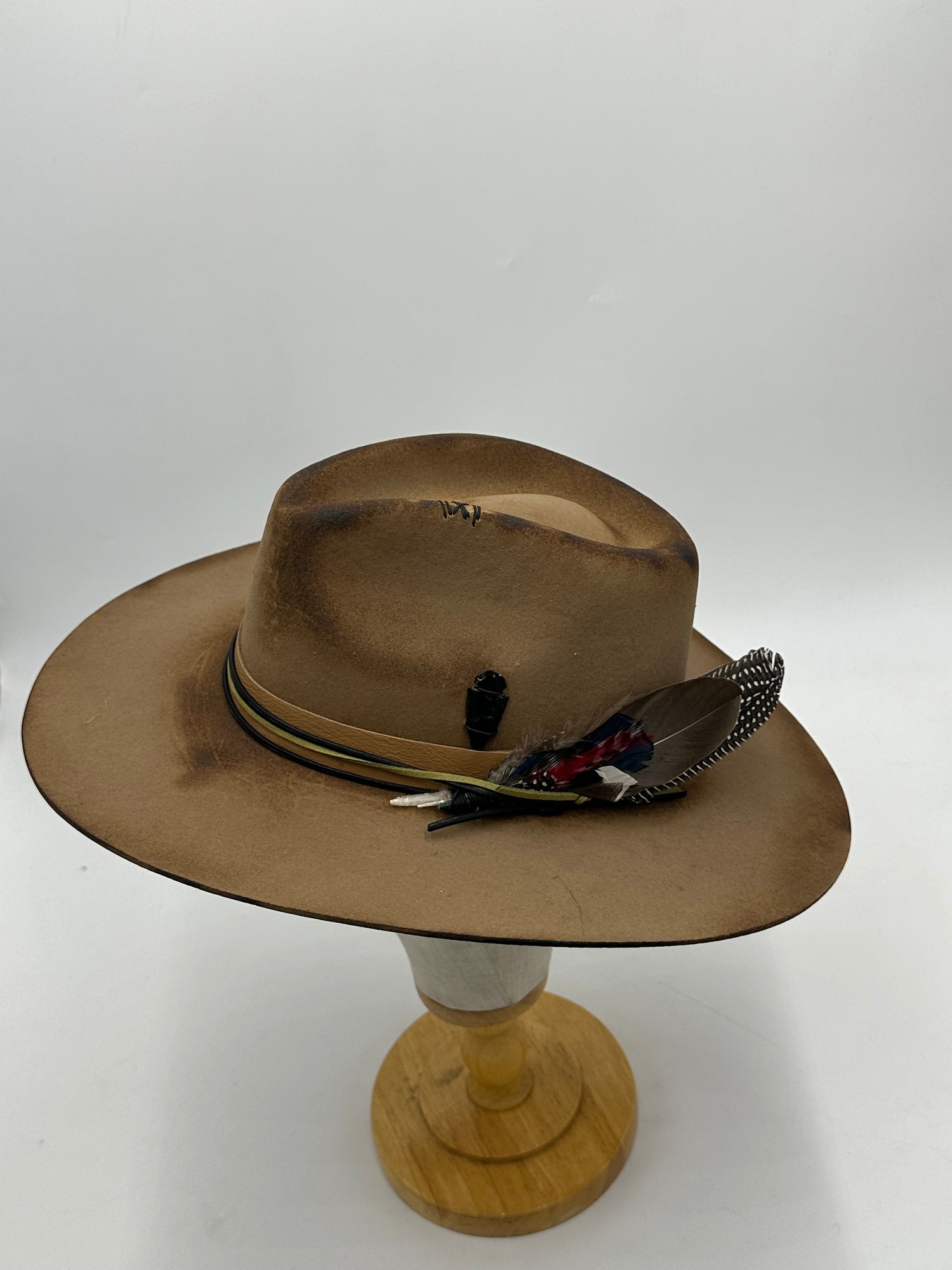 "Crafted with a sleek black glass, the arrowhead serves as a reminder of our origins. With three engraved bullets, it symbolizes the direction we are headed in, always moving forward. A perfect addition to any collection."