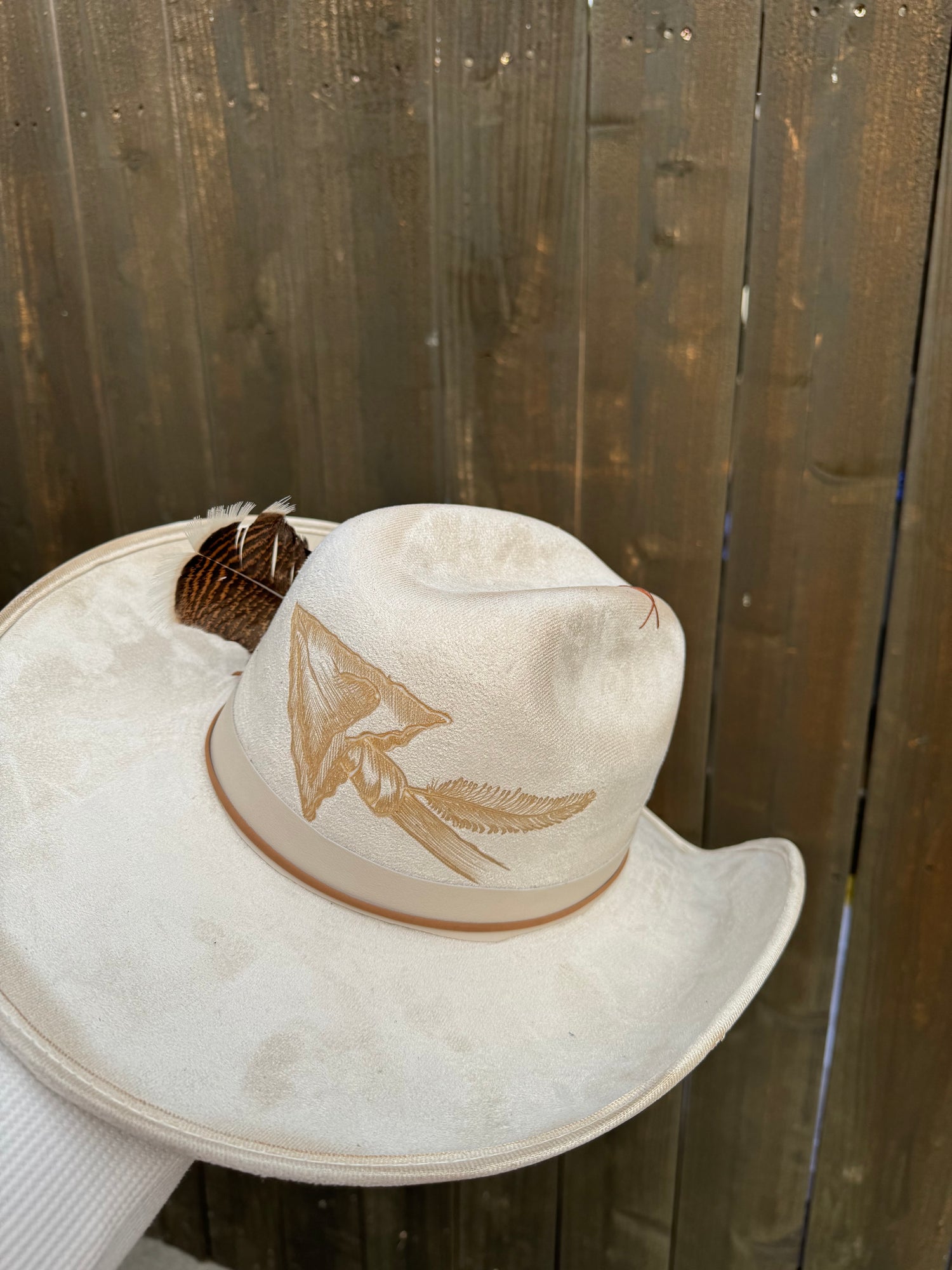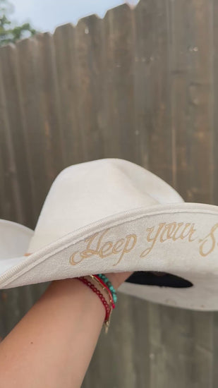 This suede hat features a unique burned design and a one-of-a-kind phrase to keep your soul clean and your boots dirty. With its durable material and eye-catching details, this hat is perfect for outdoor adventures. Embrace your inner wanderer and embrace the journey.