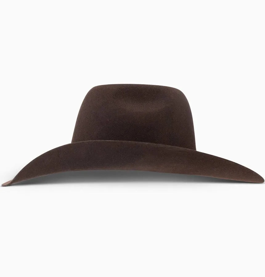 rabbit hat with a 5 1/4" tall, rounded brick crown and 4 1/4" medium curved brim.